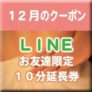 LINEをお友達登録して下さっている方限定で、¥1,000-分(10分)延長クーポンをプレゼント致します☆